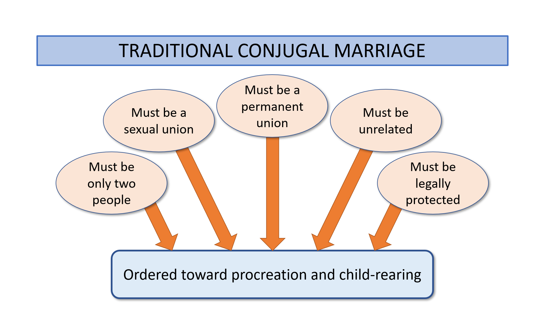 Just consider how marriage’s orientation toward procreation makes sense of all of the other norms of marriage that most of us take for granted. The openness to procreation explains why marriage must be between only two people, why it must be a sexual union, why it must be permanent, why the spouses must be biologically unrelated, and why marriage needs legal protections.